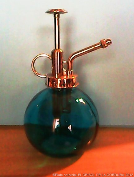 Para quien no haya oído hablar de este remedio, (hasta hace unos días, yo entre ellos), hay en la Red, por supuesto, una amplia información de ese compuesto…la plata coloidal es básicamente plata y agua: es el resultado de un sencillo proceso electromagnético que puede llevarse a cabo en menos de una hora; sería un error pensar que la plata coloidal es un mero producto que contiene plata. De hecho es pura plata metálica de grupos microscópicos de tan sólo unos cuantos átomos, puestos en suspensión en agua pura, por la pequeña carga eléctrica en cada átomo.Como antibiótico de amplio espectro, la plata coloidal inactiva las enzimas de todas las células bacterianas, hongos y virus que éstas usan para su metabolismo del oxígeno.